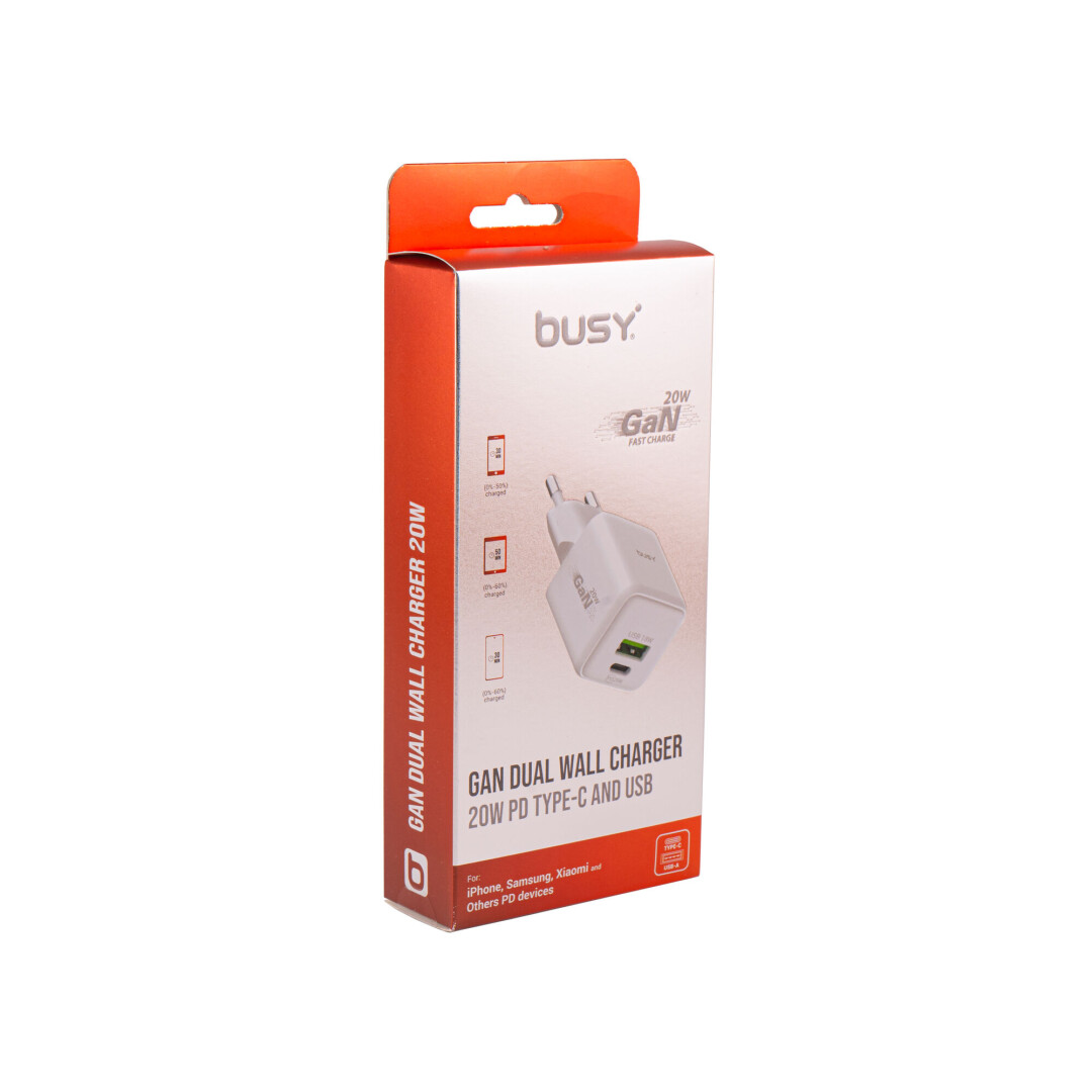 - GAN Dual kućni punjač (20W PD USB-C + 18W USB-A)