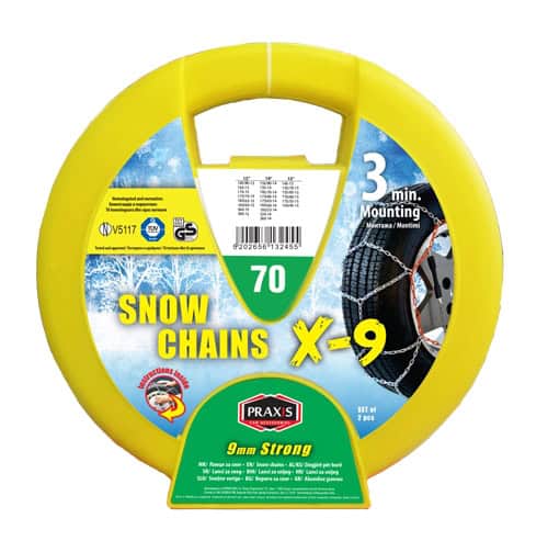 Sa Praxis lancima za sneg – 9 mm, tip 70, bićete spremni za snežne i zaleđene puteve. Praktični, sigurni i izdržljivi – odličan izbor za zimsku vožnju.